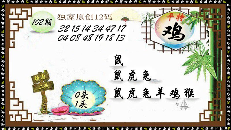 102期六合对联诗:横联:二九点头 上联:一七大顺六来一 下联:猪前虎尾必中特 解:竹。密码:29830